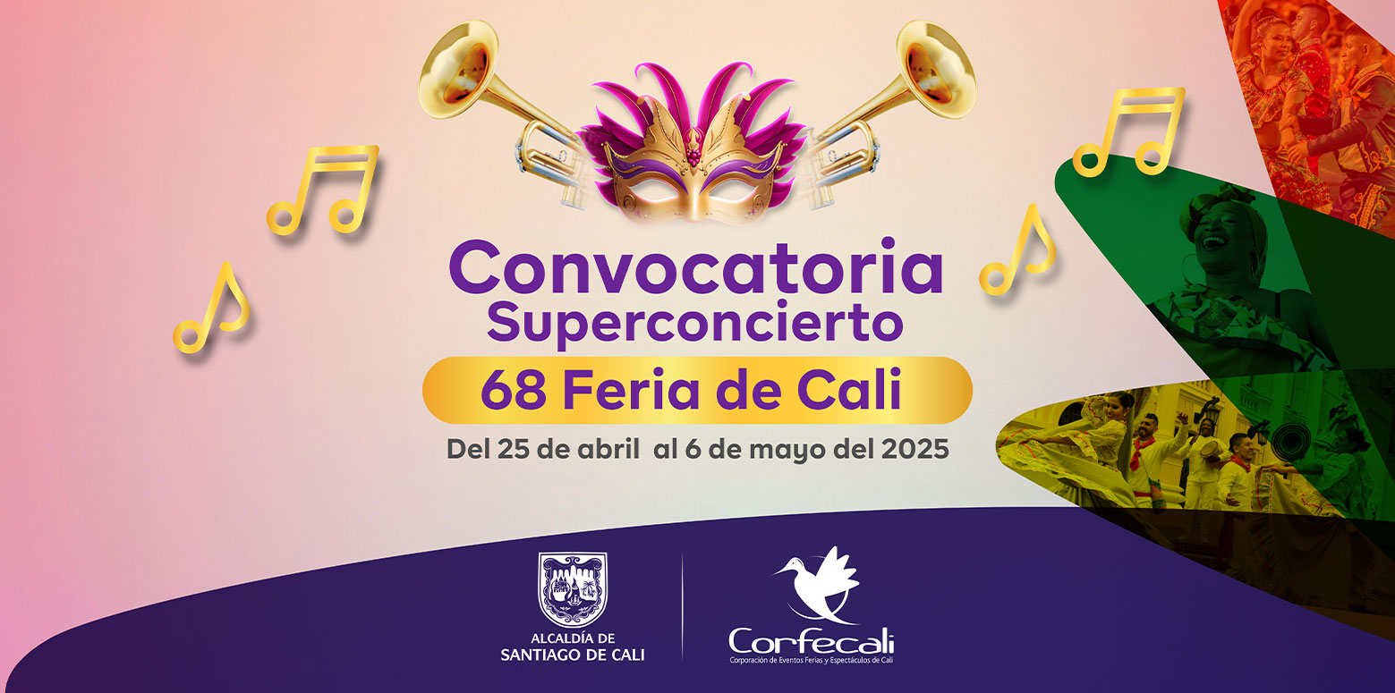 La Corporación de Eventos, Ferias y Espectáculos de Cali – CORFECALI, como dueña de las patentes y marcas Super Concierto y Feria de Cali, anuncia a los oferentes, ciudadanía y a todos aquellos empresarios interesados en la licitación para la realización del Superconcierto de la 68 Feria de Cali, estará abierta hasta el 06 de mayo a las 4:00 p.m.