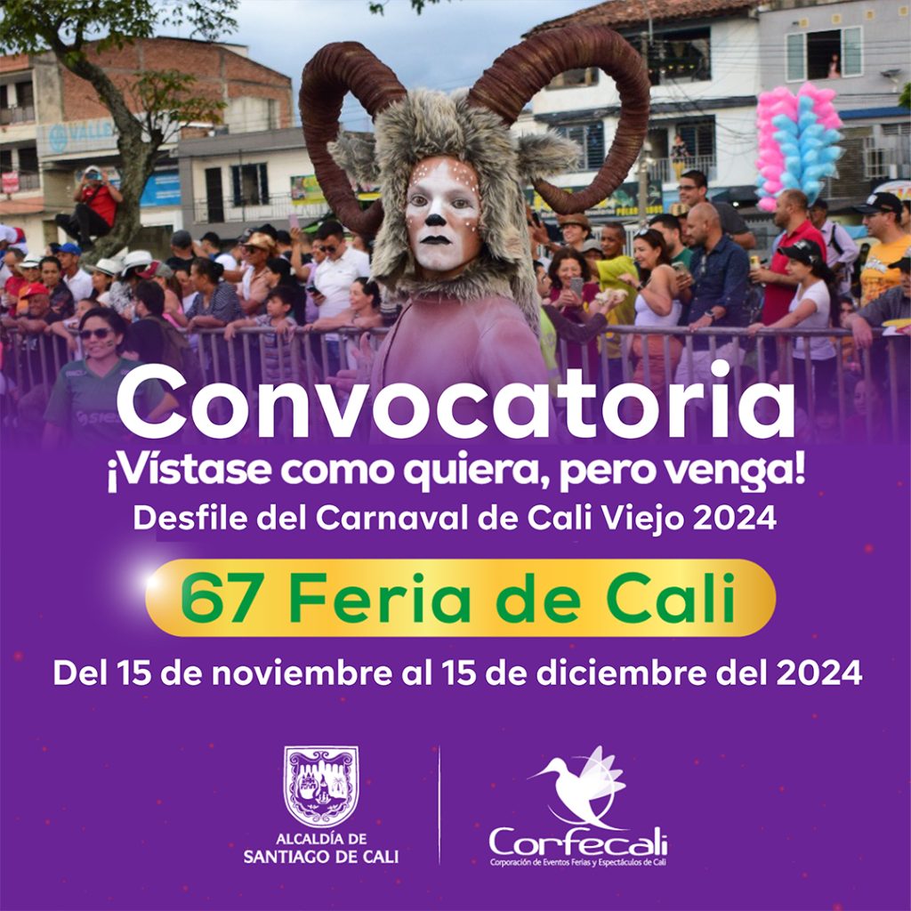 En el marco de la versión 67 de la Feria de Cali, invitamos a la comunidad caleña y organizaciones culturales a hacer parte de nuestro tradicional Desfile del Carnaval de Cali Viejo, en la categoría “Vístase como quiera, pero venga”, un espacio de inclusión para personas residentes en la ciudad de Cali, en el que podrán participar en dos modalidades: Quienes se inscriban, harán parte del Desfile del Carnaval de Cali Viejo, evento que se llevará a cabo este 28 de diciembre de 2024, y durante su participación serán calificados por el comité evaluador, que otorgará un reconocimiento económico de la siguiente manera: Vestuarios Colectivos: A manera de reconocimiento se escogerán tres (03) vestuarios colectivos. El de mayor calificación obtendrá el primer puesto ($4.400.000) pesos, el segundo puesto ($2.200.000) pesos y tercer puesto de ($1.100.000) pesos, según corresponda al resultado de la deliberación del comité evaluador del Desfile de Carnaval de Cali Viejo. Vestuarios Individuales: En esta categoría se brindará reconocimiento a las tres (3) propuestas seleccionadas por el comité evaluador, las cuales serán reconocidas con ($3.100.000, 2.100.000 y 1.100.000) pesos cada una de acuerdo al primer, segundo y tercer puesto. El comité evaluador podrá declarar desierta cualquier categoría. Observaciones: 1. El comité evaluador podrá declarar desierta cualquier categoría. 2. Los ganadores de la categoría de vestuarios colectivos deberán seleccionar dos representantes para cobrar el monto del premio según corresponda. 3. Para la entrega de los reconocimientos se realizará una revisión de los antecedentes y medidas correctivas, en el caso que alguno de los integrantes presente alguna dificultad de este tipo no podrá reclamar el reconocimiento y se le asignará al siguiente de la lista de elegible según la calificación dada por el jurado calificador. 4. Si el ganador hace parte de un colectivo sin personería jurídica, lo puede representar una persona natural. Los interesados en participar deben inscribirse en la página de Corfecali https://www.corfecali.com.co y diligenciar el formulario, llenando los campos con la información requerida y enviando la documentación solicitada. Formulario para vestuario individual: https://forms.gle/yv8z3AFi9UxUCFoL6 Formulario de inscripción para personas, Colectivos y/u organizaciones: https://forms.gle/yv8z3AFi9UxUCFoL6 “Descargue el formato de autorización y uso de imagen de los participantes aquí!: https://www.corfecali.com.co/wp-content/uploads/2024/10/PPE-FT-04-AUTORIZACION-DE-TRATAMIENTO-DE-DATOS-PERSONALES-Y-USO-DE-IMAGEN-GENERAL-1.docx En el caso de contar con menores de edad se debe diligenciar el permiso departicipación de menores, Documento de uso y autorización de datos e imágenes,registro civil y cedula de uno de los padres (este paquete debe venir autenticado). “Descargue el formato aquí”: https://www.corfecali.com.co/wp-content/uploads/2024/11/AUTORIZACION-PARA-LA-PARTICIPACION-Y-USO-DE-IMAGEN-DE-MENORES-DE-EDAD-EN-LOS-EVENTOS-2024.docx “Descargue el formato de carta de intención aquí”: https://www.corfecali.com.co/wp-content/uploads/2024/11/Carta-de-intencion-de-participacion-67-Feria-de-Cali-2024.docx FECHAS DE APERTURA: 15 de noviembre del 2024 CIERRE DE INSCRIPCIÓN: 15 diciembre del 2024 hasta las 12:00 de la noche.