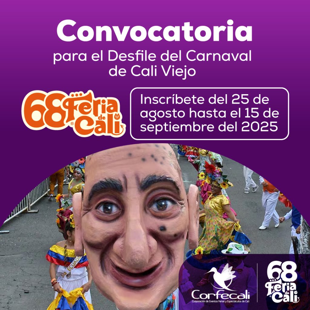 La Corporación de Eventos, Ferias y Espectáculos de Cali – Corfecali, anuncia la apertura de la convocatoria para participar en el Desfile del Carnaval de Cali Viejo, que se realizará el próximo 28 de diciembre de 2025 en el marco de la 68ª Feria de Cali. La convocatoria estará habilitada desde el 25 de agosto de 2025 hasta las 5:00 p.m. del 15 de septiembre del 2025. Este desfile, declarado Patrimonio Cultural Inmaterial de Santiago de Cali en 2017, se ha consolidado como una de las expresiones más auténticas de la caleñidad y cuenta con un Plan Especial de Salvaguardia que garantiza su preservación. Si eres comparsa, colectivo cultural, artista o portador de tradiciones, esta es tu oportunidad de ser parte de uno de los eventos más emblemáticos de nuestra ciudad. Las comparsas y propuestas de esta versión del desfile deberán girar en torno a la temática “Nuestra ciudad”, destacando valores como la identidad cultural, la diversidad, la creatividad, la historia y la alegría colectiva que caracterizan a Cali y a su gente. Modalidades de participación: La convocatoria contempla la selección de: ● 30 comparsas de 30 a 50 integrantes con posibilidad de recibir estímulo económico. ● Comparsas invitadas nacionales (máximo 5). ● Vestuarios colectivos en la modalidad de “vístase como quiera, pero venga”, con reconocimiento para los tres mejores. ● Vestuarios individuales, que también recibirán premios a los tres primeros lugares. ● Dirección artística Cada comparsa deberá contar con un abanderado y un elemento macro-formato, que formarán parte de la evaluación del jurado. Por otro lado, Corfecali entregará importantes estímulos a los seleccionados dentro de la convocatoria: – Comparsas: $32.784.000 COP cada una – Rey o Reina del Carnaval: $8.047.800 COP – Abanderados (hombre y mujer): $4.628.800 COP cada uno – Premios para vestuarios colectivos e individuales, con montos que oscilan entre $1.157.200 y $4.628.800 COP Adicionalmente, se entregarán galardones a la comparsa más Carnavalera, más Representativa y más Alegre, que además tendrán acceso directo al desfile del próximo año. Quiénes pueden participar ● Personas jurídicas sin ánimo de lucro, con mínimo dos años de constitución y domicilio en Cali. ● Entidades culturales, juntas de acción comunal, instituciones educativas, colonias, clubes sociales y colectivos extranjeros establecidos en la ciudad. Proceso de inscripción Las inscripciones deberán realizarse en línea a través de la sección “Convocatorias” formulario disponible en la página oficial de Corfecali: Términos de referencia y formulario de inscripción Corfecali invita a todos los colectivos artísticos y culturales a sumarse a esta celebración, que exalta la tradición, la memoria y la creatividad de nuestra ciudad, reafirmando al Carnaval de Cali Viejo como símbolo de identidad y patrimonio de los caleños. Comunicaciones Corfecali Correo: comunicaciones@corfecali.com.co
